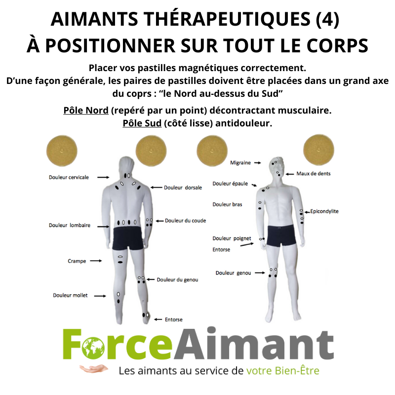 L’aimant canalise cette énergie qui descend sur le nerf et la cellule qui va relâcher ou contracter le nerf du muscle. L’équilibre rétabli de la posture permet à la douleur de s’estomper.
