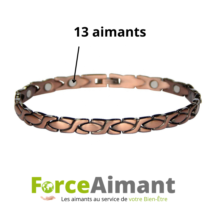 Le bracelet cuivre magnétique, un bijou qui prend soin de vous. Ce modèle a 13 aimants.