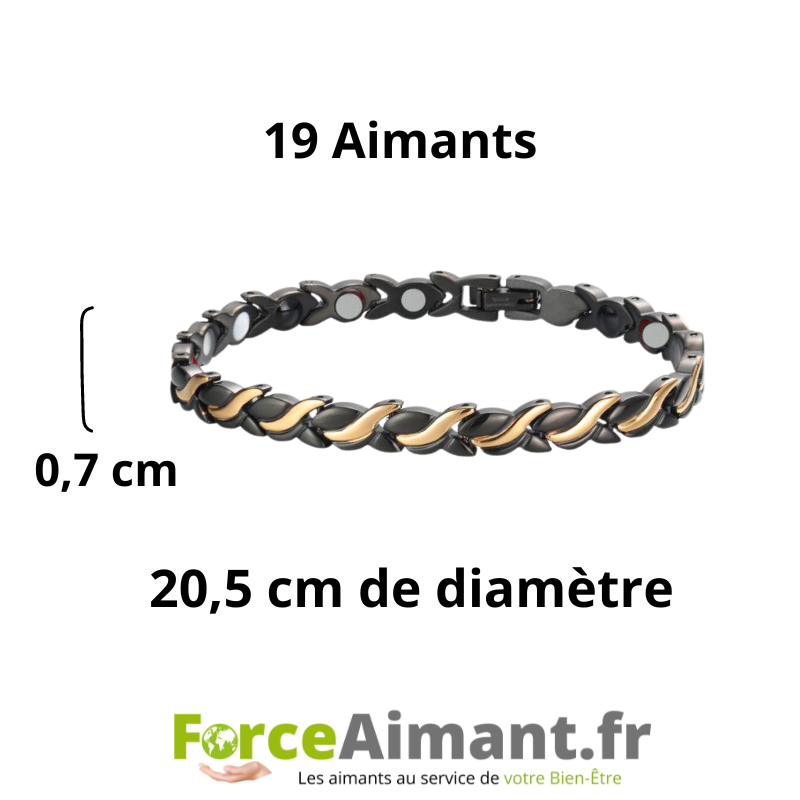 Cet élégant bracelet, bicolore à porter en toutes occasions. Il apportera un bien-être et un confort articulaire.