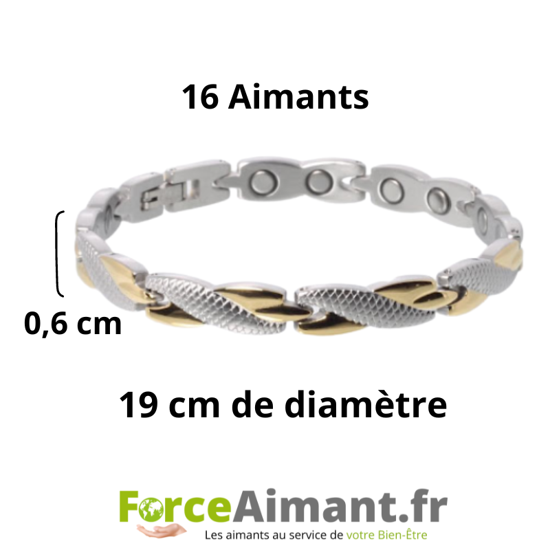 Cet élégant bracelet, bicolore à porter en toutes occasions. Il apportera un bien-être et un confort articulaire.