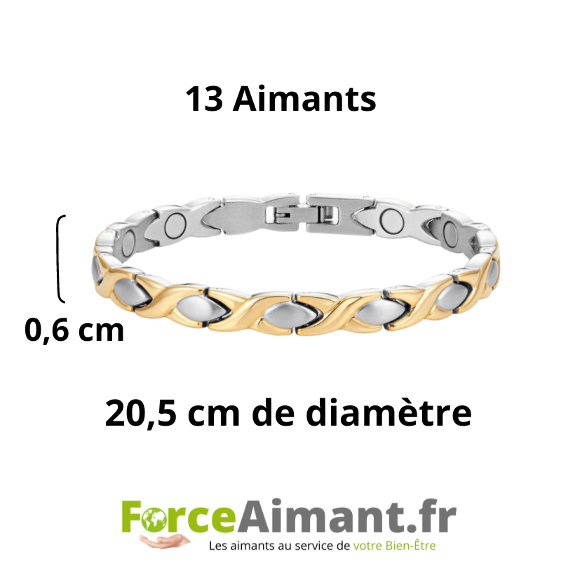 Bracelet magnétique Olive :Cet élégant bracelet, bicolore à porter en toutes occasions. Il apportera un bien-être et un confort articulaire.