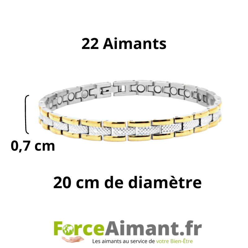 Cet élégant bracelet, bicolore à porter en toutes occasions. Il apportera un bien-être et un confort articulaire.