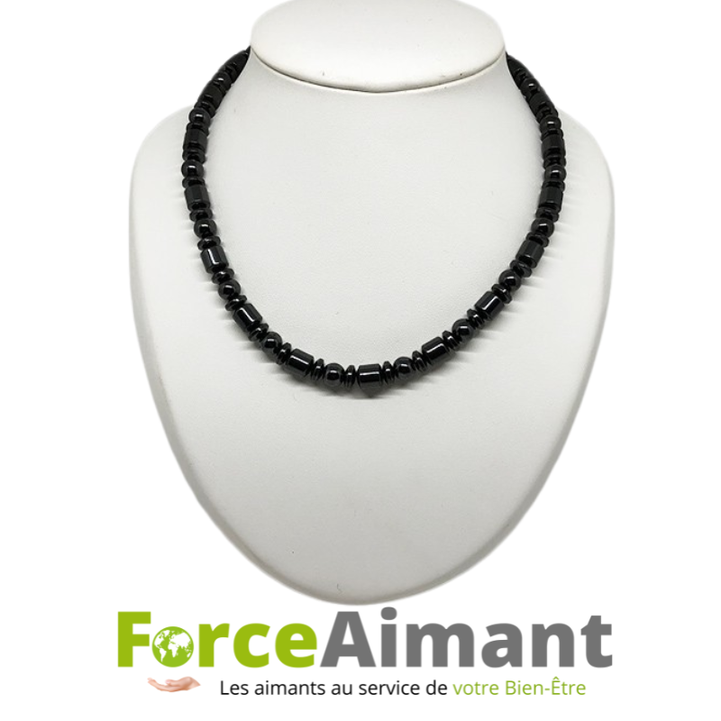 Le collier en hématite magnétique allie les vertus du minéral et celles des aimants.
