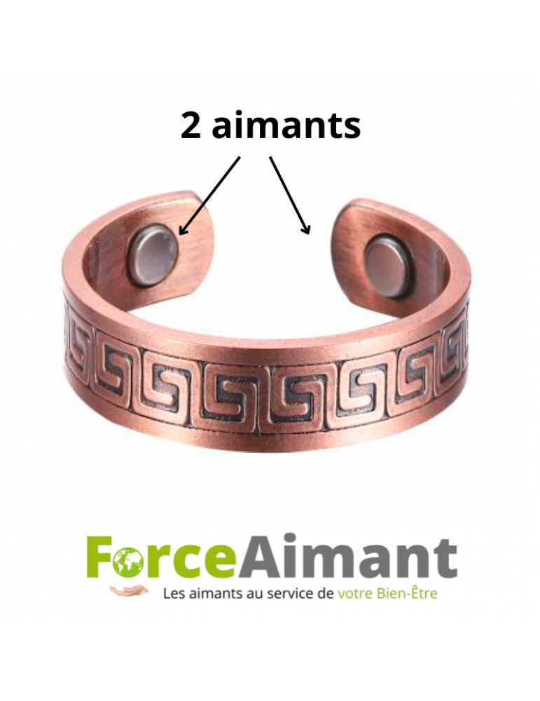 La bague cuivre magnétique, un bijou qui prend soin de vous. Ce modèle a 2 aimants.Le cuivre est considéré comme un anti-inflammatoire et l'aimant peut agir sur votre bien-être.