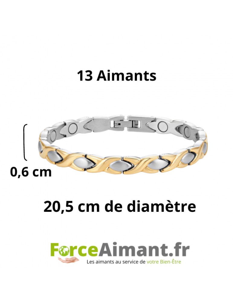 Cet élégant bracelet, bicolore à porter en toutes occasions. Il apportera un bien-être et un confort articulaire.