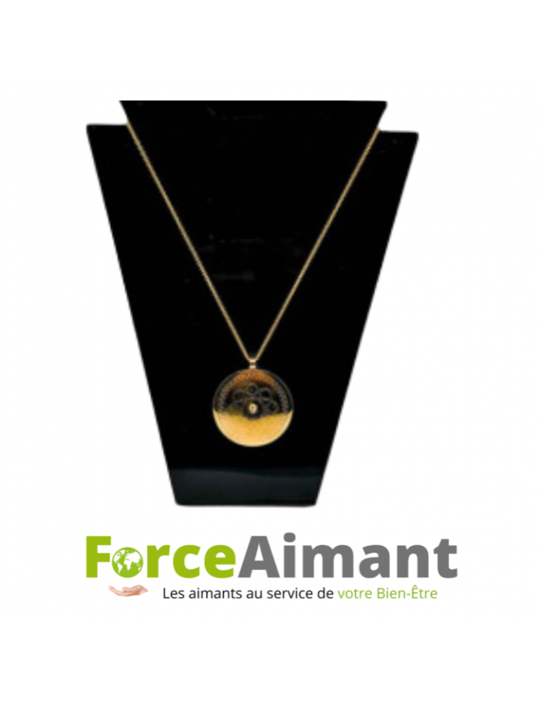 Chaine et son pendentif est incrusté des 12 pierres de l'énergie dont deux aimants.