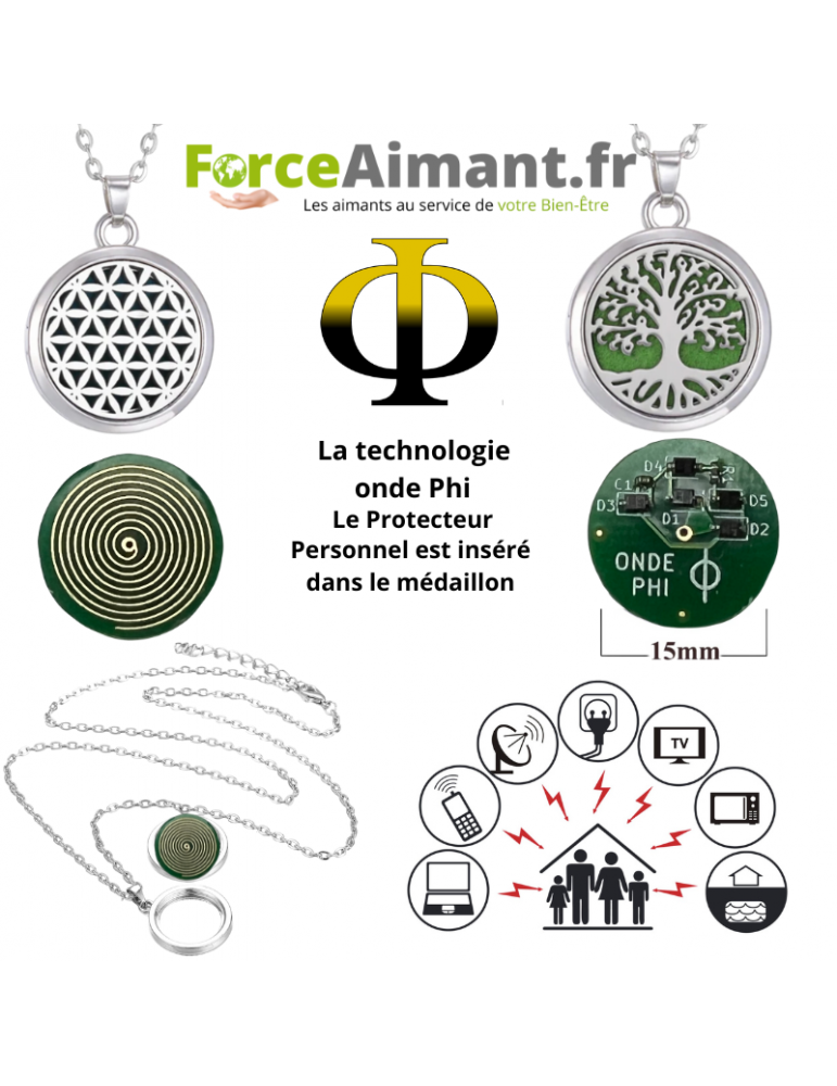 La protection Onde Phi est inséré dans le médaillon (au choix fleur de vie ou arbre de vie)